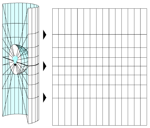 Cependant cette forme est trop complexe pour permettre un passage de la sphère au plan !