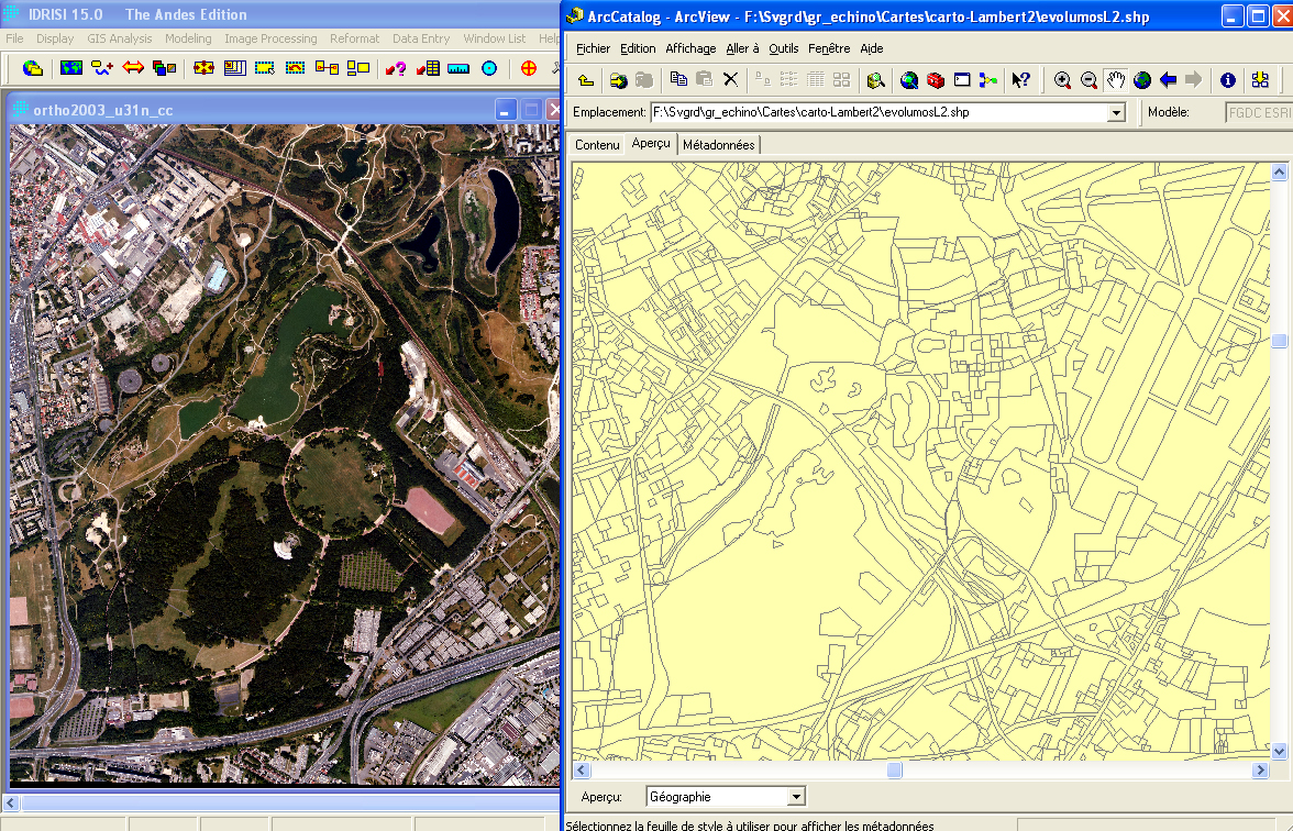 Poursuite de la vectorisation de chaque thème d'occupation du sol sur le fichier ortho2003_u31n_cc en complétant simultanément votre tableau (feuille EXCEL ZEA11_a.xls ) et en utilisant CartaLinx :